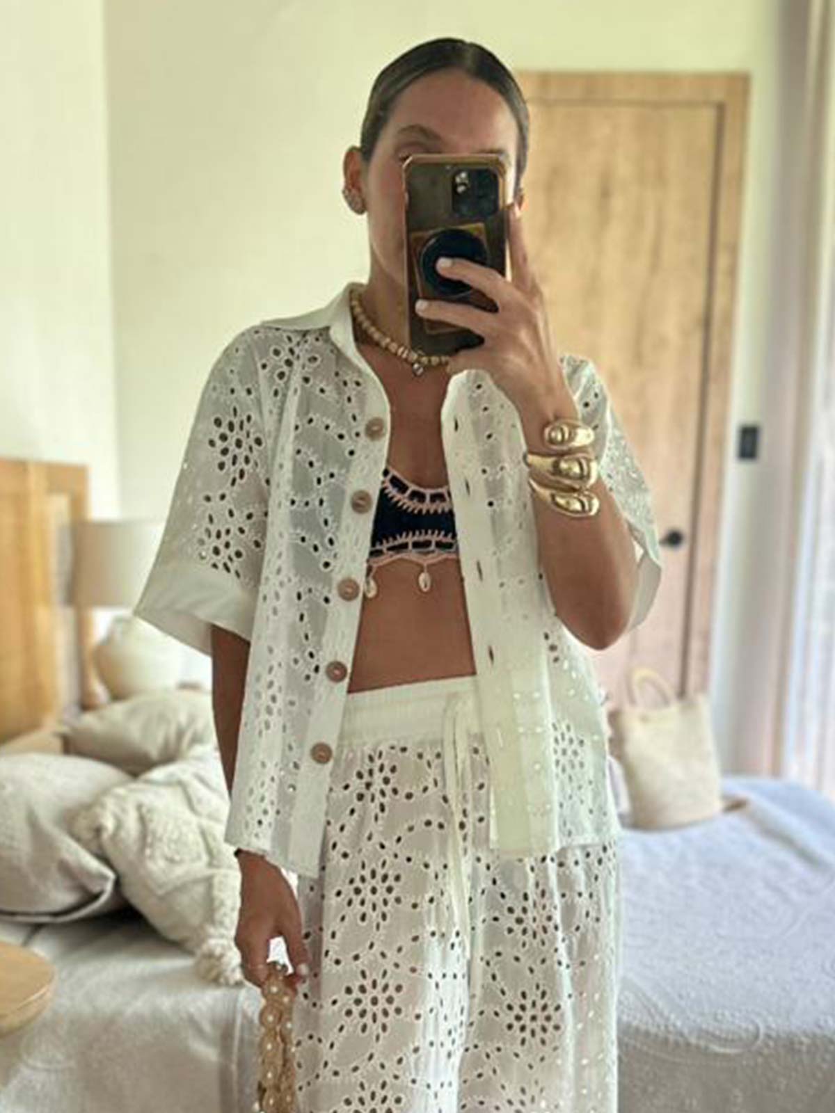 La modelo mide 1.56m y usa talla S.